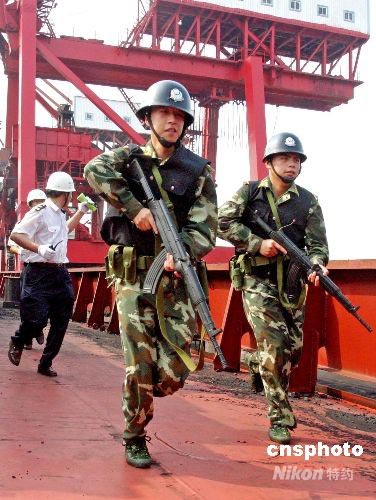 7月8日,浙江省舟山市首次舉行港口船岸反恐演習(xí),以恐怖分子搭船前往奧運(yùn)比賽項目城市--青島為預(yù)想,演練舟山市海事、港務(wù)、公安、邊防等部門如何確認(rèn)、搜索船上恐怖分子及排查爆炸品。此次反恐演習(xí),除了加強(qiáng)與地方公安機(jī)關(guān)溝通,建立反恐聯(lián)動機(jī)制外,還針對船舶、港口設(shè)施的恐怖和暴力事件的犯罪活動,進(jìn)一步提高處置突發(fā)事件應(yīng)變能力,維護(hù)轄區(qū)水上人民生命財產(chǎn)安全,確保2008年北京奧運(yùn)會期間舟山海域通航安全。中新社發(fā) 黃正勝 攝