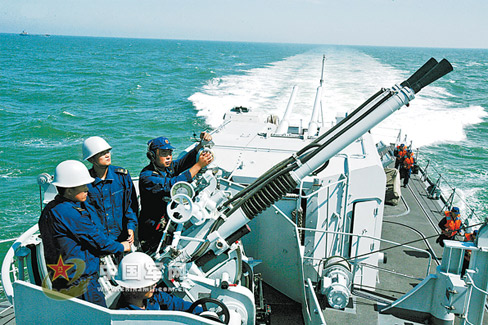 國慶長假剛過,東海艦隊某驅逐艦支隊把艦艇拉到某陌生海域,開展編隊聯合海上對抗演練,提高部隊實戰(zhàn)能力。圖為艦艇編隊航渡途中進行防空訓練的情景! 〗夥跑妶筇丶s通訊員 代宗鋒攝