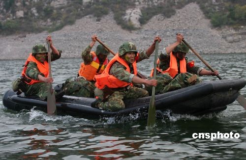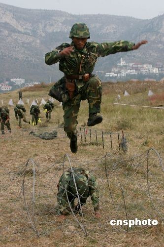 10月18日,濟(jì)南軍區(qū)偵察兵動(dòng)態(tài)比武展開(kāi)。滿臉油彩的偵察隊(duì)員們身負(fù)35公斤戰(zhàn)斗裝具行軍50公里,主要進(jìn)行了夜間行軍、操舟越障、通過(guò)雷場(chǎng)、偵察報(bào)知、調(diào)制要圖、山地攀登六項(xiàng)課目考核。中新社發(fā) 崔成俊 攝
