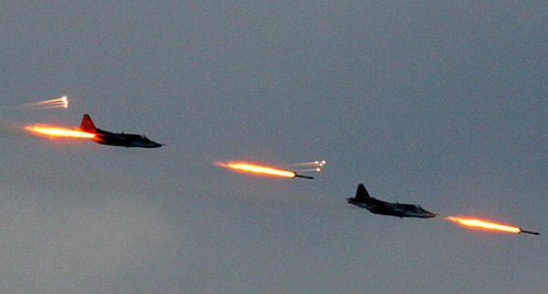 兩架白俄羅斯軍隊(duì)蘇-25戰(zhàn)斗機(jī)參加演習(xí)。