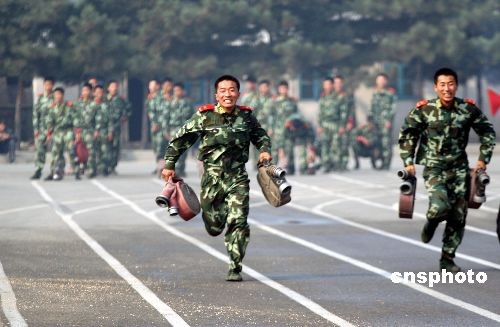 2008年10月22日,沈陽市公安局消防支隊在消防訓練基地隆重舉行“學啟工,練精兵”比武競賽活動,活動中廣大消防官兵通過體能、技能、戰(zhàn)術、合成及新裝備演示等幾項基本功的對決,最終決出誰是“練兵武狀元”。中新社發(fā) 趙敬東 攝