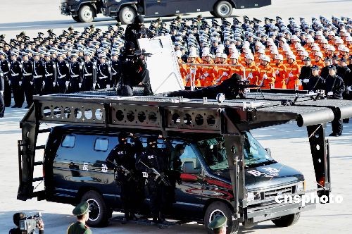 11月3日,沈陽市公安局為建局60周年,舉行閱兵式。近2000人40個(gè)方隊(duì),所有警種參加了儀式。閱兵式展示了沈陽公安打擊犯罪、反恐的強(qiáng)大力量。中新社發(fā) 文契 攝