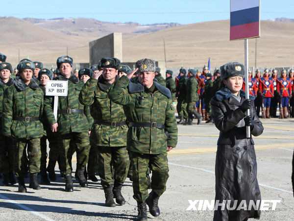 11月8日,蒙古國(guó)和俄羅斯聯(lián)合維和軍演在蒙中部的中央省正式開始。這次軍演為期30天,在蒙中部的中央省和北部的鄂爾渾省進(jìn)行,是蘇聯(lián)解體后蒙俄兩國(guó)首次舉行聯(lián)合軍演。蒙俄共有700名官兵參加演習(xí),其中450名為俄方官兵。 新華社記者郝利鋒攝