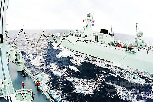 海軍赴索馬里海域護(hù)航編隊(duì)進(jìn)行海上補(bǔ)給演練