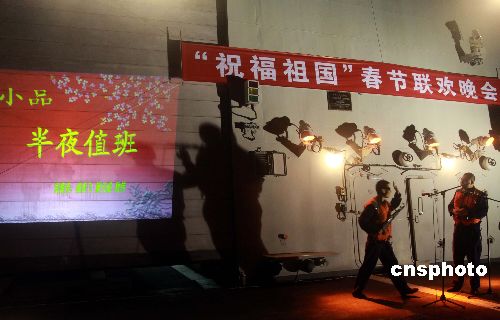 中國(guó)傳統(tǒng)的除夕前夜,正在印度洋亞丁灣海域執(zhí)行護(hù)航任務(wù)的中國(guó)海軍艦艇編隊(duì)“海口”號(hào)導(dǎo)彈驅(qū)逐艦,在艦艉甲板上舉行“‘祝福祖國(guó)’春節(jié)聯(lián)歡晚會(huì)”。護(hù)航官兵們紛紛登臺(tái)獻(xiàn)藝,將獨(dú)具特色的甲板“春晚”推向一個(gè)又一個(gè)歡樂(lè)的高潮。中新社發(fā) 孫自法 攝