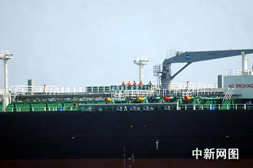 春節(jié)前夕,被護商船“凱達”號打出“中國海軍,能源衛(wèi)士!”標(biāo)語向護航官兵致敬。中新社記者 孫自法 攝