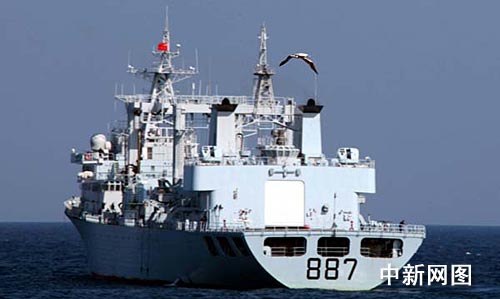 “?凇碧枌(dǎo)彈驅(qū)逐艦新春與“微山湖”號綜合補(bǔ)給艦在海上進(jìn)行補(bǔ)給時(shí),一只海鷗從“微山湖”艦上空飛過。中新社記者 孫自法 攝