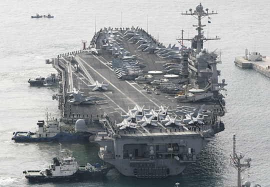 中新網(wǎng)3月11日電 據(jù)韓聯(lián)社報(bào)道,將參加韓美“關(guān)鍵決斷”聯(lián)合軍演的美國(guó)第3艦隊(duì)核動(dòng)力航母“約翰·斯坦尼斯”號(hào)(9.6萬噸),11日上午抵達(dá)了釜山海軍作戰(zhàn)司令部基地。