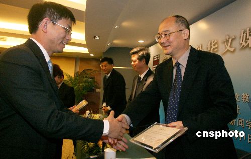 十一月三十日,“第三期海外華文媒體高級研修班”在北京結(jié)業(yè),國務(wù)院僑辦副主任趙陽(右一)等出席結(jié)業(yè)式并為學員頒發(fā)結(jié)業(yè)證書。中新社發(fā) 張勤 攝