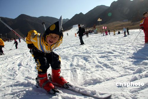圖為一名兒童在快樂地試滑。12月2日,隨著“陽光冰雪天使”滑雪節(jié)開幕,首都青少年科技戶外運動素質(zhì)教育基地在北京八達嶺滑雪場成立。當天的儀式上,百名來自奧運建設(shè)一線工人的子女和希望小學的孩子們,與一千多名滑雪愛好者首批體驗試滑,感受今冬第一場“雪”。中新社發(fā) 張愛東 攝
