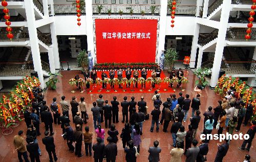 十二月五日,閩南“晉江華僑史館”在福建晉江博物館隆重開館。華僑史館共分為《海天萬里故園情—晉江華僑華人歷史展》和《晉臺緣港澳情—晉江港澳臺同胞展》兩個永久性展覽,展覽面積一千八百平方米,充分展示晉江先人飄洋過海,闖蕩打拼的奮斗歷程和積淀下來的拼搏文化,激勵更多的后人樹立和發(fā)揚愛拼敢贏的晉江精神。中新社發(fā) 傅丹丹 攝