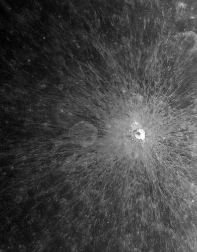 中國國家航天局今天向媒體發(fā)布信息說,“嫦娥一號”衛(wèi)星CCD相機已對月球背面進行成像探測,并獲取了月球背面部分區(qū)域的影像圖。此圖顯示的是月球背面Lents撞擊坑附近一個典型的輻射線撞擊形貌,坑緣直徑約30km,從撞擊坑中心放射狀拋射大量高亮物質(zhì)(根據(jù)區(qū)域地質(zhì)背景,應該為基性斜長巖碎屑),該類撞擊坑形成年代通常較晚。本圖是由5軌CCD正視影像數(shù)據(jù)拼接而成的,數(shù)據(jù)獲取時間為2007年12月4日。