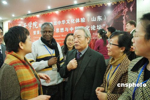 12月16日至18日,由中國(guó)國(guó)家漢辦主辦的全球孔子學(xué)院院長(zhǎng)研修班中華文化體驗(yàn)暨首屆“孔子思想與中華文化論壇”在山東大學(xué)舉行;顒(dòng)期間,來自18個(gè)國(guó)家34個(gè)孔子學(xué)院的44名外方院長(zhǎng)赴孔子故里——山東曲阜,參觀考察了孔府、孔廟和孔子研究院,體驗(yàn)中華文化,并出席首屆“孔子思想與中華文化論壇”,聆聽山東大學(xué)儒學(xué)研究中心著名教授丁冠之和傅有德教授主講的《孔子,我們共同的老師》、《論言說:中西差異及其根源》的演講。背景資料:孔子學(xué)院是中外合作建立的非營(yíng)利性教育機(jī)構(gòu),其宗旨和使命是增進(jìn)世界人民對(duì)中國(guó)語言和文化的了解,發(fā)展中國(guó)與外國(guó)的友好關(guān)系,促進(jìn)世界多元文化發(fā)展,并以東方圣人孔子的名字命名。從2004年開始,中國(guó)已在64個(gè)國(guó)家和地區(qū)建立210所孔子學(xué)院(包括孔子課堂),其中125所已開班授課。此外,還有61個(gè)國(guó)家的200多個(gè)機(jī)構(gòu)提出開辦申請(qǐng)。中新社發(fā) 金云 攝
