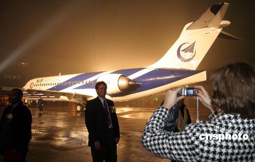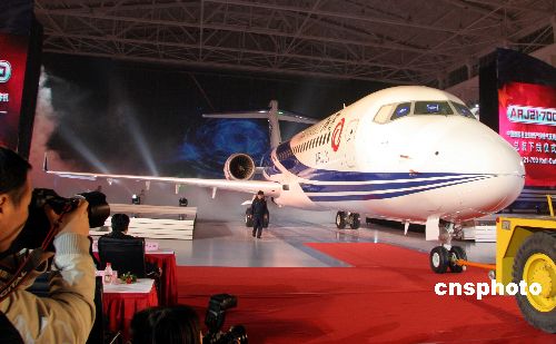 十二月二十一日下午,由中國航空工業(yè)第一集團公司(中國一航)自行研制生產(chǎn)的中國首架自主知識產(chǎn)權噴氣支線客機ARJ21-700飛機,在上海飛機制造廠順利實現(xiàn)總裝下線。此舉表明,中國在民用飛機科研和制造領域取得突破性進展,中國自主研制的先進噴氣支線客機已成為世界民用客機大家庭的新成員。中新社發(fā) 孫自法 攝