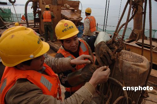 2月10日,福(州)廈(門)高速鐵路疑難項(xiàng)目之一----福州烏龍江特大橋工程獲得突破性進(jìn)展。工程采用“水中錨碇系統(tǒng)輔助的板凳結(jié)構(gòu)平臺”施工方法,轉(zhuǎn)入水面承臺施工,解決了水下施工難題。該橋全長868.178米,處于烏龍江河床最窄處,水深浪急雙向潮差達(dá)5米左右,地質(zhì)為傾斜光板巖,是福建省橋梁建設(shè)史上技術(shù)難度最高的項(xiàng)目。中新社發(fā) 鄭祚聲 攝