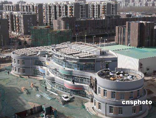 2月28日,北京眾多媒體參觀國奧村居住區(qū)。北京國奧村居住區(qū)內的微能耗建筑幼兒園應用太陽能采暖、太陽能熱水、太陽能光伏發(fā)電、風力發(fā)電、智能化控制等22余項高新技術。中新社發(fā) 趙振清 攝