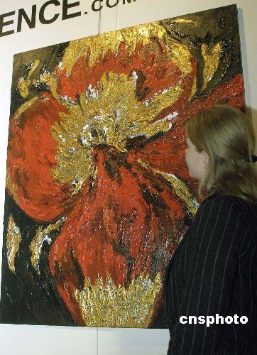 第三十屆紐約藝術(shù)博覽會(huì)28日在曼哈頓開幕,為期5天的博覽會(huì)將展出數(shù)十個(gè)國家的近千名藝術(shù)家的美術(shù)、雕塑、攝影等藝術(shù)作品。圖為來自丹麥的一名藝術(shù)家以黃金為創(chuàng)作材料的油畫作品《花》。中新社發(fā) 鄧悅 攝