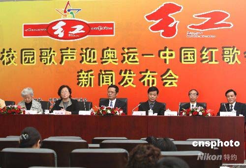 4月29日,“校園歌聲迎奧運(yùn)——中國紅歌會(huì)”新聞發(fā)布會(huì)在北京宣布,從當(dāng)日起在全國各高校選拔迎奧運(yùn)“紅歌會(huì)”歌手。該活動(dòng)由中國藝術(shù)教育促進(jìn)會(huì)、中國新聞社、江西電視臺(tái)傾情打造, 參賽者演唱的“紅歌”包括歷屆奧運(yùn)歌曲、北京奧組委推薦歌曲、經(jīng)典優(yōu)秀歌曲和學(xué)生自創(chuàng)的校園歌曲,希望藉此使更多青年學(xué)生用歌唱的形式激發(fā)凝聚力、向心力和創(chuàng)新精神,掀起中國高校迎奧運(yùn)的熱潮。中新社發(fā) 趙振清 攝