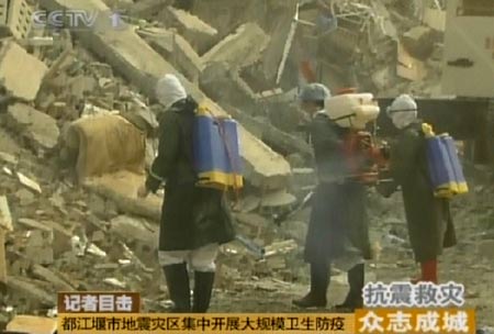都江堰市地震災(zāi)區(qū)展開大規(guī)模衛(wèi)生防疫