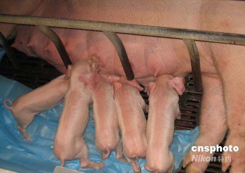 圖:廣東誕生首例體細(xì)胞五頭“克隆豬”