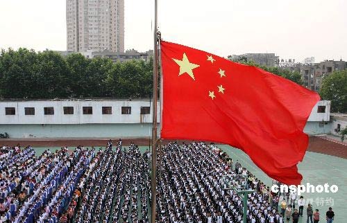 湖北襄樊中學(xué)降半旗哀悼地震遇難者