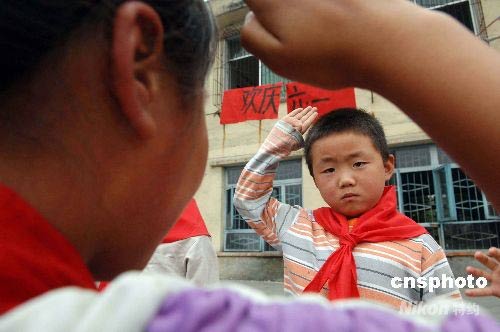 6月1日,四川什邡市湔氐鎮(zhèn)中心小學(xué)、龍居中心小學(xué)等地震災(zāi)區(qū)的孩子,過(guò)了一個(gè)特殊的六一國(guó)際兒童節(jié)。中新社發(fā) 陳文 攝