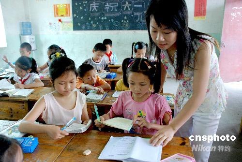 6月6日,江西省婺源縣實驗學(xué)校喜迎兩位從四川綿陽地震災(zāi)區(qū)來求學(xué)的兩姊妹,一位是曾就讀綿陽市成綿路小學(xué)三年級(3)班的王心怡同學(xué),一位是曾就讀綿陽市玉皇小學(xué)三年級(2)班的王月璽,該校免費幫她們減免全部學(xué)雜和書本費,為她們提供教材,學(xué)校班主任和同學(xué)還利用課余時間幫她們補課,熱情安排她們在該校三年級(3)班學(xué)習(xí),。中新社發(fā) 王國紅 攝