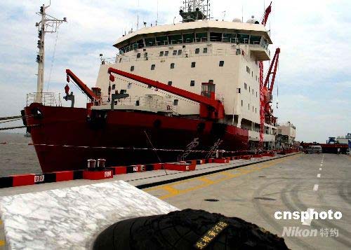 7月11日,身披全新白色“戰(zhàn)袍”的中國“雪龍”號預(yù)定上午10時從浦東外高橋中國極地考察國內(nèi)基地專用碼頭離“家”奔赴北極,執(zhí)行中國第三次北極科學(xué)考察任務(wù)。此前,世界首個極地考察船專用碼頭——中國極地考察國內(nèi)基地碼頭,在上海正式通過竣工驗收并交付使用。這標(biāo)志著中國極地考察船徹底結(jié)束多年漂泊無“家”的歷史,擁有了自己的母港。中新社發(fā) 陸從兵 攝
