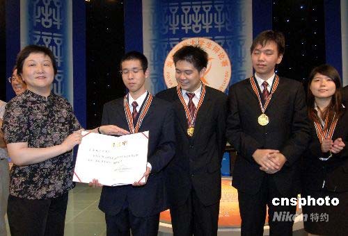 7月23日,中國科學(xué)技術(shù)協(xié)會書記處書記程東紅女士為榮獲第七屆海峽兩岸大學(xué)生辯論賽團(tuán)體冠軍的來自臺灣的東吳大學(xué)代表隊頒獎。當(dāng)日,歷時3天的第七屆海峽兩岸大學(xué)生辯論賽在福州圓滿落幕。中新社發(fā) 劉可耕 攝