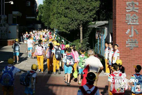 9月1日,北京市中小學(xué)開(kāi)學(xué)第一天,增加體育課程成為新學(xué)年的最大亮點(diǎn)。據(jù)了解,北京市各區(qū)縣都要求學(xué)校把以往“零散”、“非正規(guī)”的體育活動(dòng)改成正式的體育課,并列入正式的課程表中,每天都要上一節(jié)體育課。中新社發(fā) 富田 攝