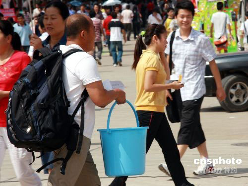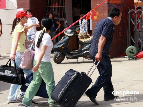 9月6日,在安徽省淮北煤炭師范學(xué)院,許多學(xué)生家長(zhǎng)為子女?dāng)y帶生活用品,辛苦護(hù)送其入學(xué)。中新社發(fā) 萬(wàn)善朝 攝