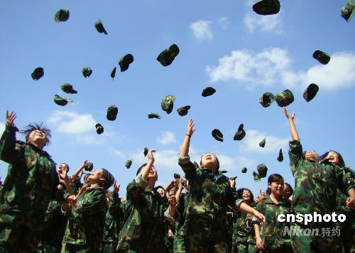 全國(guó)各高校新生一開(kāi)學(xué)便開(kāi)始大學(xué)“第一堂課”——軍訓(xùn)。揚(yáng)州大學(xué)文學(xué)院針對(duì)194名“90后”大一新生,提出了“快樂(lè)軍訓(xùn)”的口號(hào),除了為期10多天的正常軍事訓(xùn)練外,學(xué)院還開(kāi)展了趣味游戲、“軍花”評(píng)比、內(nèi)務(wù)競(jìng)賽等活動(dòng),為新生的軍訓(xùn)生活增添了一份樂(lè)趣,同時(shí)促進(jìn)彼此間的認(rèn)識(shí)和了解。中新社發(fā) 陳中秋 攝