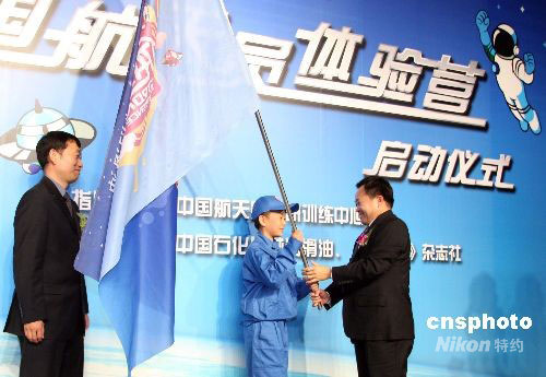 9月23日,“中國(guó)航天員體驗(yàn)營(yíng)”活動(dòng)在北京天文館舉行啟動(dòng)儀式,現(xiàn)場(chǎng)展出的航天員專用出征服倍受關(guān)注。體驗(yàn)營(yíng)將通過(guò)全民海選方式選拔一批航天愛(ài)好者,于11月14日在中國(guó)航天城展開(kāi)為期三天的體驗(yàn)活動(dòng)。獲選的營(yíng)員將首次走進(jìn)神七航天員的訓(xùn)練生活,體驗(yàn)真實(shí)的太空訓(xùn)練科目,一圓航天夢(mèng)想。中新社發(fā) 廖文靜 攝