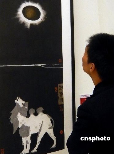 10月14日,在北京中國(guó)美術(shù)館展出的“首屆中國(guó)城市藝術(shù)書(shū)畫(huà)家提名展”吸引參觀者,該展由中國(guó)城市發(fā)展研究會(huì)城市藝術(shù)專業(yè)委員會(huì)主辦,展覽匯集了中國(guó)當(dāng)下具有較高藝術(shù)成就的書(shū)畫(huà)家的作品,旨在提升全國(guó)城市文化品味,促進(jìn)書(shū)畫(huà)家走向社會(huì),服務(wù)于社會(huì),是當(dāng)代書(shū)畫(huà)家參與經(jīng)濟(jì)發(fā)展,城市建設(shè),傳承民族文化的橋梁和紐帶。圖為展覽作品之一《大漠長(zhǎng)河》。中新社發(fā) 錢興強(qiáng) 攝