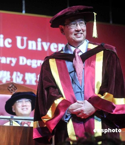 香港金利來集團(tuán)董事會(huì)主席、前全國人大常委曾憲梓,十月二十三日,獲香港理工大學(xué)頒授榮譽(yù)社會(huì)科學(xué)博士學(xué)位。中新社發(fā) 譚達(dá)明 攝