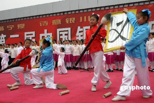 2008年11月12日上午,“回歸詩(shī)教傳統(tǒng)、重溫訓(xùn)蒙養(yǎng)正——第二屆中國(guó)銀川音樂(lè)詩(shī)歌節(jié)”在寧夏首府銀川開幕。 本屆詩(shī)歌節(jié)以“和諧寧夏、詩(shī)意銀川”為主題,以“喚醒詩(shī)教、訓(xùn)蒙養(yǎng)正”為主要內(nèi)容;顒(dòng)主辦方希望以誦讀表演的形式,通過(guò)誦讀中華經(jīng)典詩(shī)文,傳播民族優(yōu)秀文化,展示中國(guó)傳統(tǒng)詩(shī)教文化的風(fēng)采和詩(shī)歌的魅力。中新社發(fā) 蘆河 攝