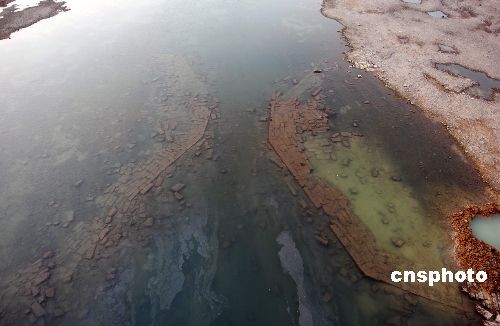 11月21日,京杭運河山東臺兒莊段明朝古運河船閘閘址。近日,一座明朝時期的古運河船閘在京杭運河山東臺兒莊段進行河道疏浚工程時被發(fā)現(xiàn)。這座古船閘全部由條狀塊石和大塊黑磚壘砌,船閘最窄處有八米,反映出當時漕運繁忙景象。據(jù)考證船閘修建于明朝萬歷年間,是明代泇運河上的頓莊船閘,是棗莊段運河(泇運河)的八閘之一,距今400多年。中新社發(fā) 高啟民 攝