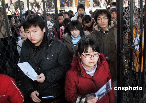 2009年1月10日,安徽省51860名考生走進考場參加2009年全國碩士研究生入學考試,報考人數(shù)比上年增加1876人。據(jù)悉,躲避就業(yè)壓力是考研大軍只增不減的一個重要原因。中新社發(fā) 從啟 攝