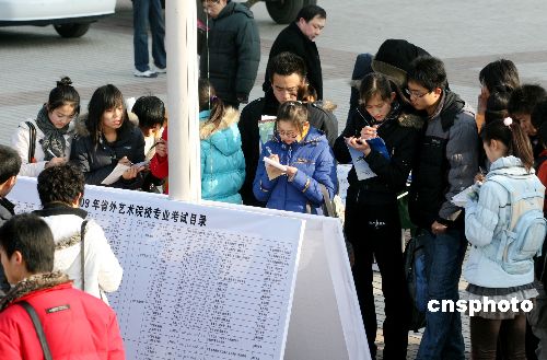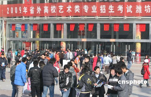 2月3日,山東濰坊藝考報名的首日,濰坊市區(qū)富華國際展覽中心擠滿了來自各地的考生。據(jù)悉,2009年山東濰坊省外藝考將于2月5日正式開考。中新社發(fā) 王勇 攝