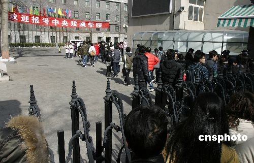 2009年2月20日,中央戲劇學(xué)院表演系初試開始。中央戲劇學(xué)院表演系今年招生人數(shù)為50人,比去年少了25人。中新社發(fā) 魯谷 攝