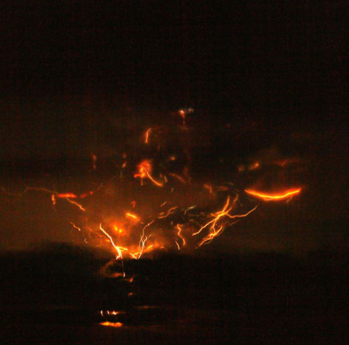 “此閃電強度比在美國中西部雷暴中所看到的閃電還要強烈。其無線電頻率噪音如此強大且持續(xù)不斷,因此生活在火山爆發(fā)區(qū)域的人根本不能看甚高頻的電視節(jié)目。”