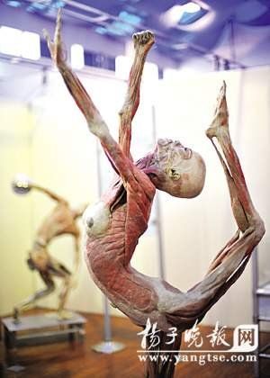 現(xiàn)場的講解員告訴記者,現(xiàn)在的標本都是塑化技術(shù),這是上世紀70年代由德國人哈根思發(fā)明的,中國于2000年引進。過去用福爾馬林浸泡的標本易變色、易變形,保存時間也不長。而塑化保存的標本都是經(jīng)過了脫水、脫脂,所有現(xiàn)在我們所看到的都是肌肉組織,看起來也就更勻稱和美觀,而經(jīng)過這樣一項技術(shù),標本可以保存500年之久,“可以稱得上現(xiàn)代木乃伊了!