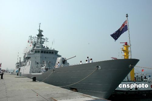 10月19日上午10時(shí),新西蘭海軍“特卡哈”(Te Kaha)號(hào)護(hù)衛(wèi)艦(舷號(hào)F77)在新西蘭海上聯(lián)合作戰(zhàn)部隊(duì)司令大衛(wèi)·安森(David Anson)準(zhǔn)將的率領(lǐng)下,駛抵中國(guó)海軍湛江軍港,開始對(duì)南海艦隊(duì)進(jìn)行為期3天的友好交流。中方南海艦隊(duì)副參謀長(zhǎng)么志樓少將在碼頭舉行儀式,歡迎新艦首次訪問(wèn)湛江。中新社發(fā) 李根成 攝