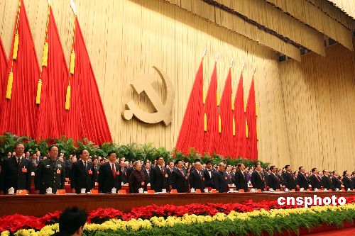 十月二十一日,中國共產黨第十七次全國代表大會在北京人民大會堂隆重閉幕。中新社發(fā) 毛建軍 攝