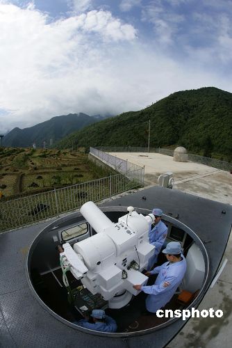 10月22日,西昌衛(wèi)星發(fā)射中心技術(shù)人員調(diào)試跟蹤火箭前期軌道的光學(xué)經(jīng)緯儀。中國國防科工委當(dāng)晚在北京宣布,“嫦娥一號(hào)”衛(wèi)星將于24日至26日在西昌衛(wèi)星發(fā)射中心擇機(jī)發(fā)射,首選發(fā)射窗口為24日18時(shí)左右。中新社發(fā) 秦憲安 攝