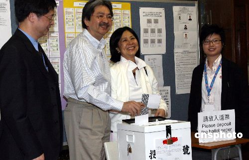 ·香港區(qū)議會(huì)選舉舉行 曾蔭權(quán)吁市民踴躍投票(圖)