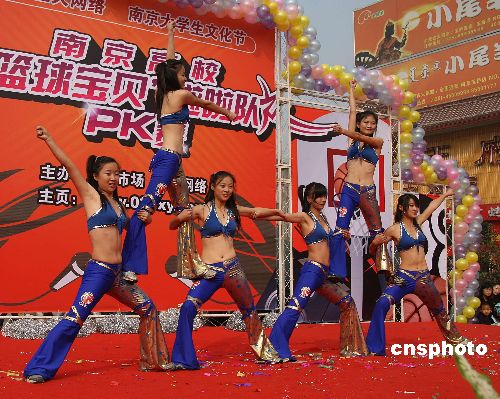 11月24日,南京高!盎@球?qū)氊悺崩怖碴燩K賽在南京舉行,來自南京十所高校的“籃球?qū)氊悺崩怖碴犚灰坏桥_,展示青春活力。經(jīng)過激烈角逐,南京林業(yè)大學、南京中醫(yī)藥大學、東南大學三支“籃球?qū)氊悺崩怖碴牱肢@前三名。中新社發(fā) 文寶 攝