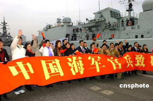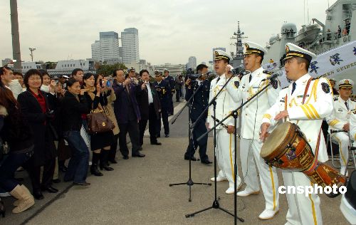 11月28日上午,中國(guó)海軍“深圳”號(hào)導(dǎo)彈驅(qū)逐艦抵達(dá)日本東京晴海碼頭,開始對(duì)日本進(jìn)行正式友好訪問(wèn)。日方舉行了熱烈的歡迎儀式。歡迎儀式后,中日兩國(guó)軍樂(lè)隊(duì)開始聯(lián)合演出。中新社發(fā) 滕劍峰 攝