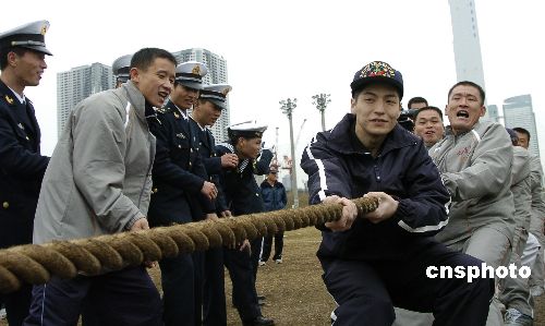 11月29日上午,正在日本進行友好訪問的中國海軍“深圳”號導彈驅逐艦上的官兵在此間與日本海上自衛(wèi)隊官兵進行了體育交流。雙方隊員分成兩支混合隊伍進行足球、拔河比賽。中新社發(fā) 朱沿華 攝