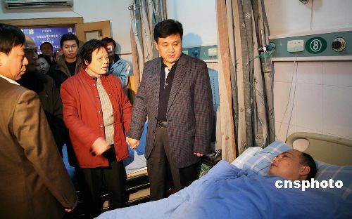 圖為十二月二十五日,國務(wù)院檢查組第十三組在國家環(huán)保總局副局長吳曉青(右一)帶領(lǐng)下,在江西省九江市看望九江市商業(yè)行政執(zhí)法稽查支隊中隊長陳衛(wèi)。